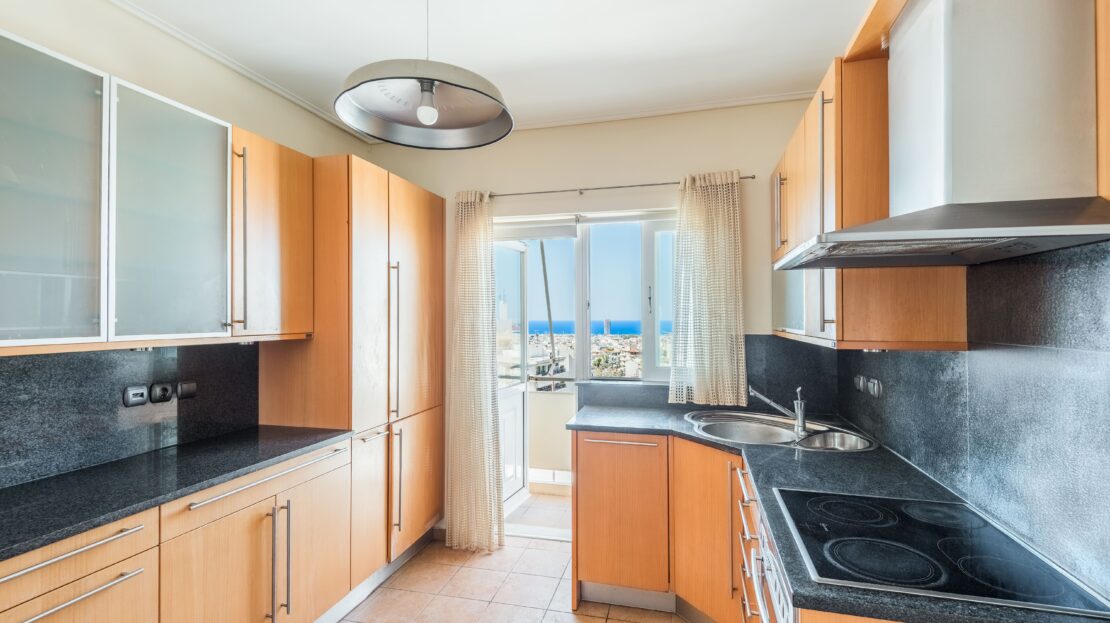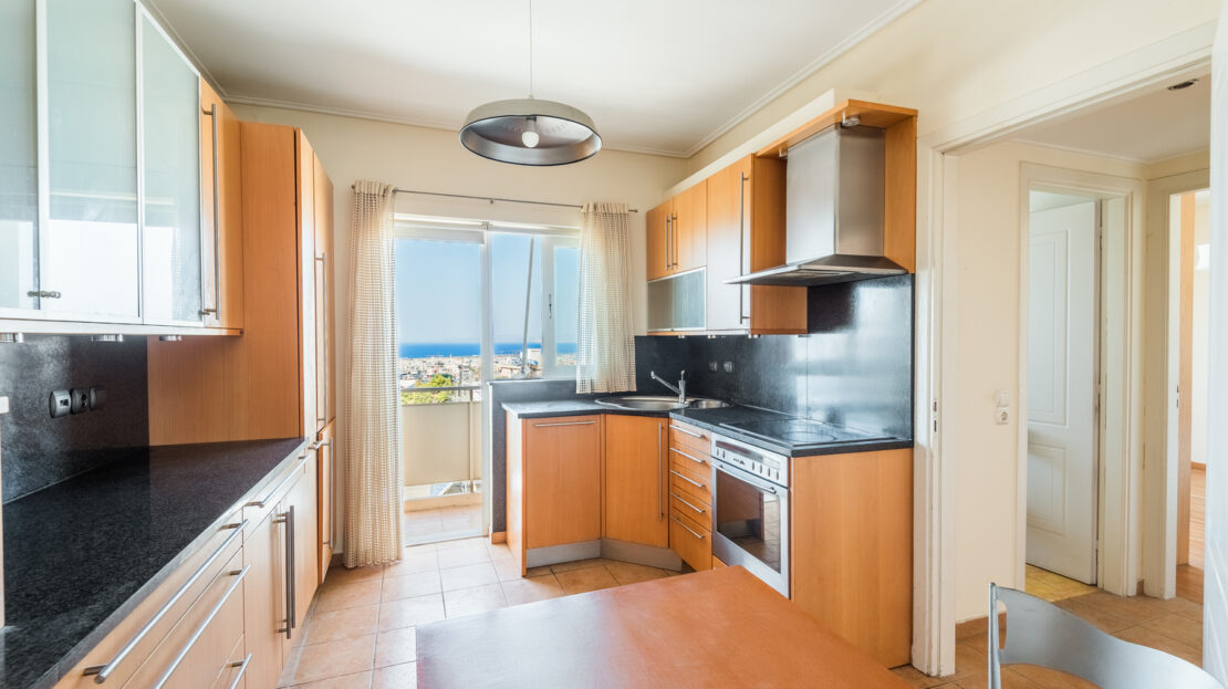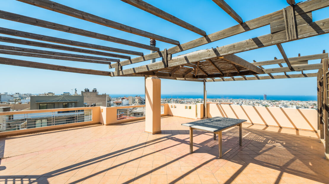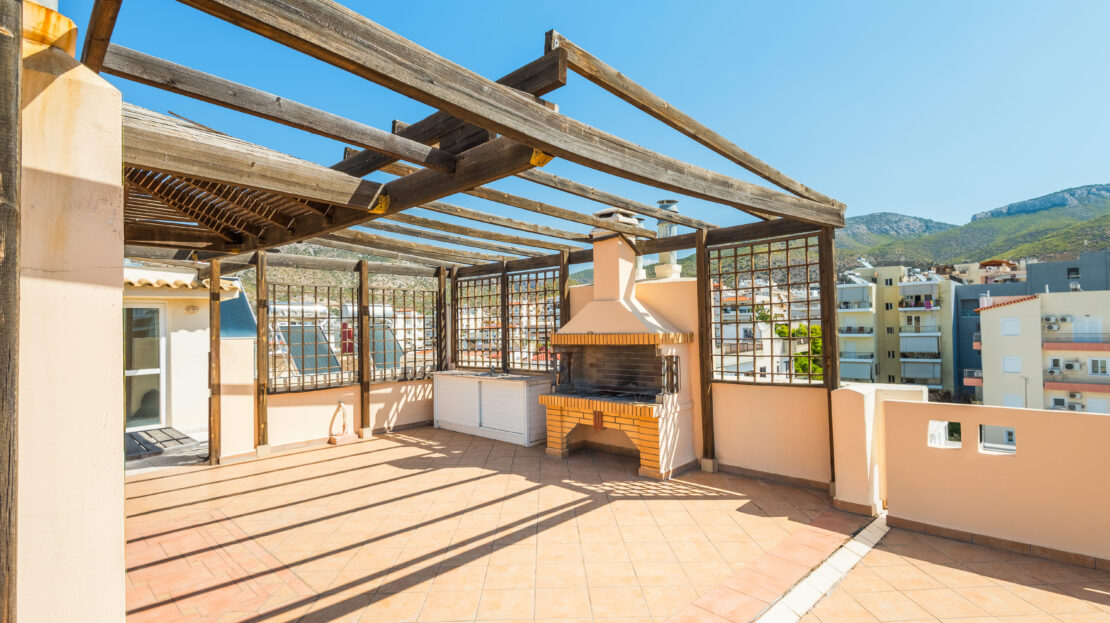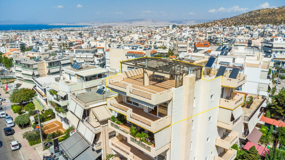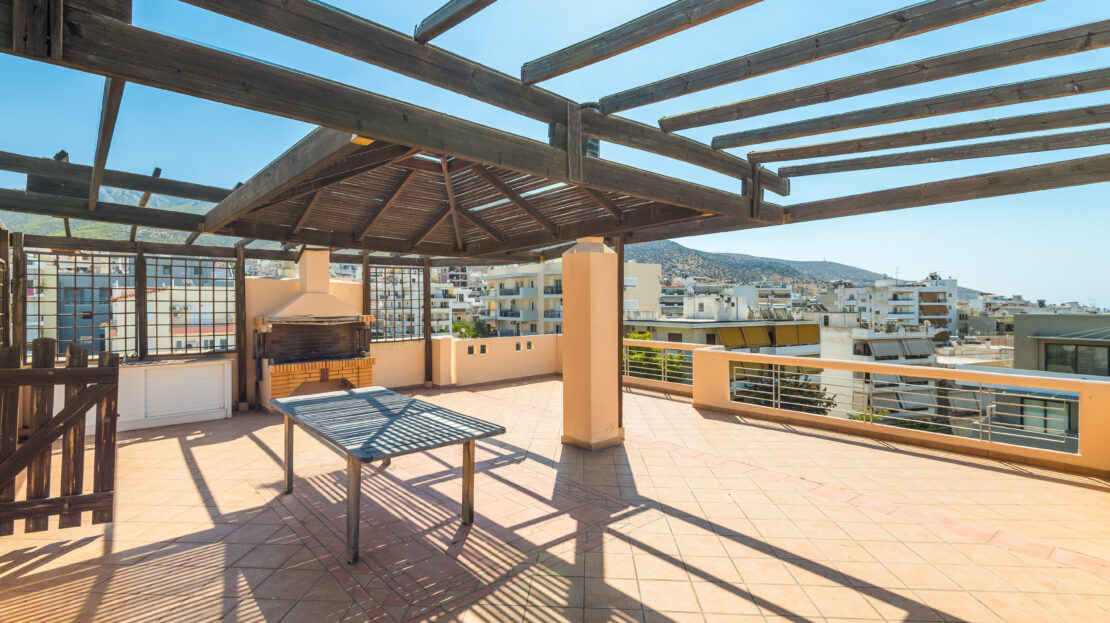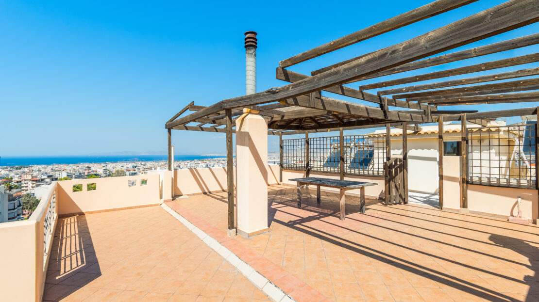 Διαμέρισμα 125τμ, 4ου ορόφου, 2 υπνοδωμάτια, 1 μπάνιο, 1 WC, κατασκευή 2002, αυτόνομη θέρμανση, τζάκι, πάρκινγκ, αποθήκη, ηλιακός θερμοσίφωνας, 70τμ αποκλειστικής χρήσης ταράτσα με χτιστό BBQ, απεριόριστη θέα θάλασσα.